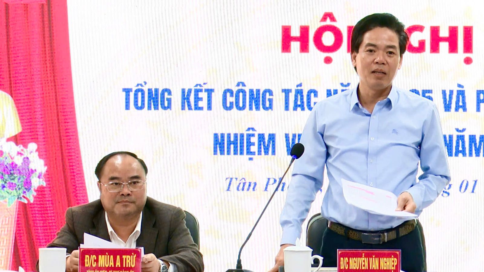 Đồng chí Mùa A Trừ - Tỉnh uỷ viên, Bí thư Đảng uỷ, Chủ tịch HĐND phường, Trưởng Ban chỉ đạo; Nguyễn Văn Nghiệp – Phó Bí thư, Chủ tịch UBND phường, Phó Thường trực Ban chỉ đạo chủ trì hội nghị.