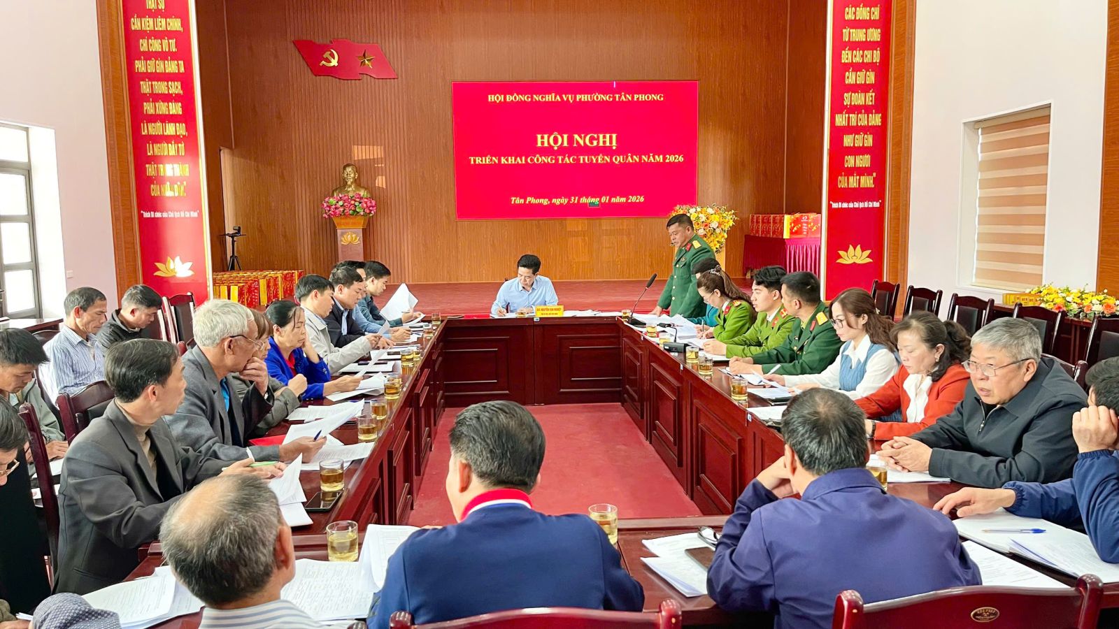 Chiều ngày, 31/01, Hội đồng nghĩa vụ phường Tân Phong, Lai Châu tổ chức Hội nghị triển khai công tác tuyển quân năm 2026. Đồng chí Nguyễn Văn Nghiệp – Phó Bí thư, Chủ tịch UBND phường, Chủ tịch Hội đồng nghĩa vụ quân sự phường Tân Phong chủ trì hội nghị.