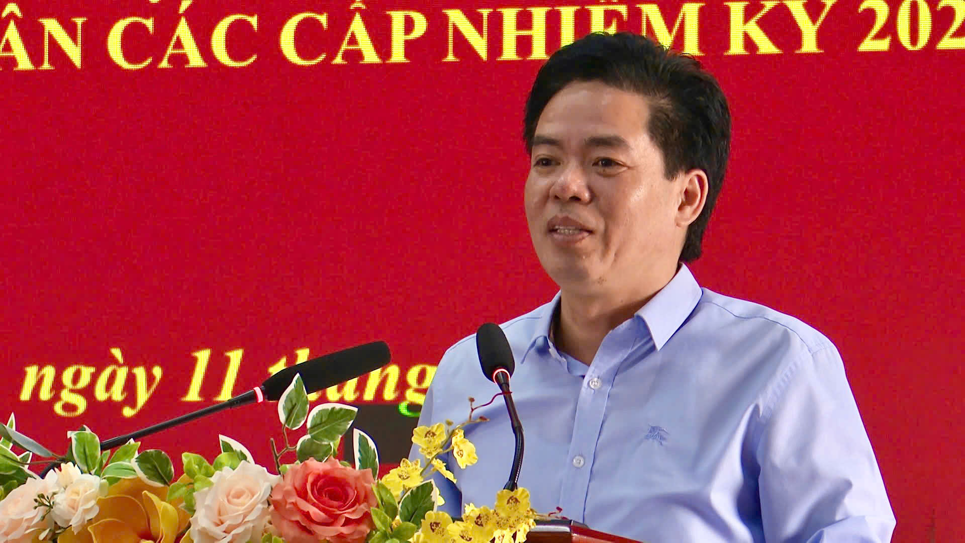 Đồng chí Nguyễn Văn Nghiệp – Phó Bí thư, Chủ tịch UBND, Chủ tịch Uỷ ban bầu cử phường Tân Phong, phát biểu tại hội nghị.