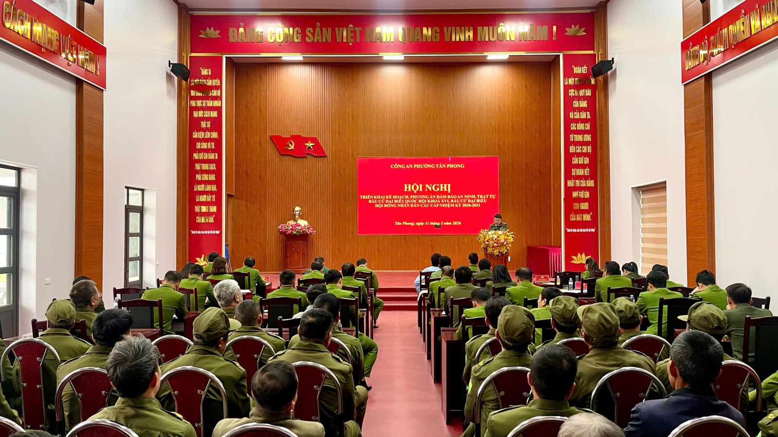 Tại hội nghị lãnh đạo Công an phường Tân Phong đã trình bày kế hoạch,  đảm bảo an ninh, trật tự Bầu cử đại biểu Quốc hội khóa XVI và đại biểu HĐND các cấp nhiệm kỳ 2026-2031 trên địa ban phường Tân Phong với 07 công tác trọng tâm, mục đích: Bảo đảm tuyệt đối an toàn cuộc bầu cử, trọng tâm là nhân sự được giới thiệu ứng cử Đại biểu Quốc hội, HĐND các cấp, lãnh đạo Đảng và nhà nước, tỉnh tại các khu vực bầu cử. Đấu tranh ngăn chặn làm thất bại mọi hoạt động chống phá, lợi dụng bầu cử để gây mất an ninh trật tự …  Cùng với đó Công an phường Tân Phong cũng đã xây dựng phương án đảm bảo an ninh, trật tự Bầu cử, phân công nhiệm vụ; dự kiến một số tình huống có thể xảy ra trong quá trình bầu cử và phương án giải quyết, nhằm đảm bảo tuyệt đối an toàn an ninh, trật tự cho Bầu cử trên địa bàn.