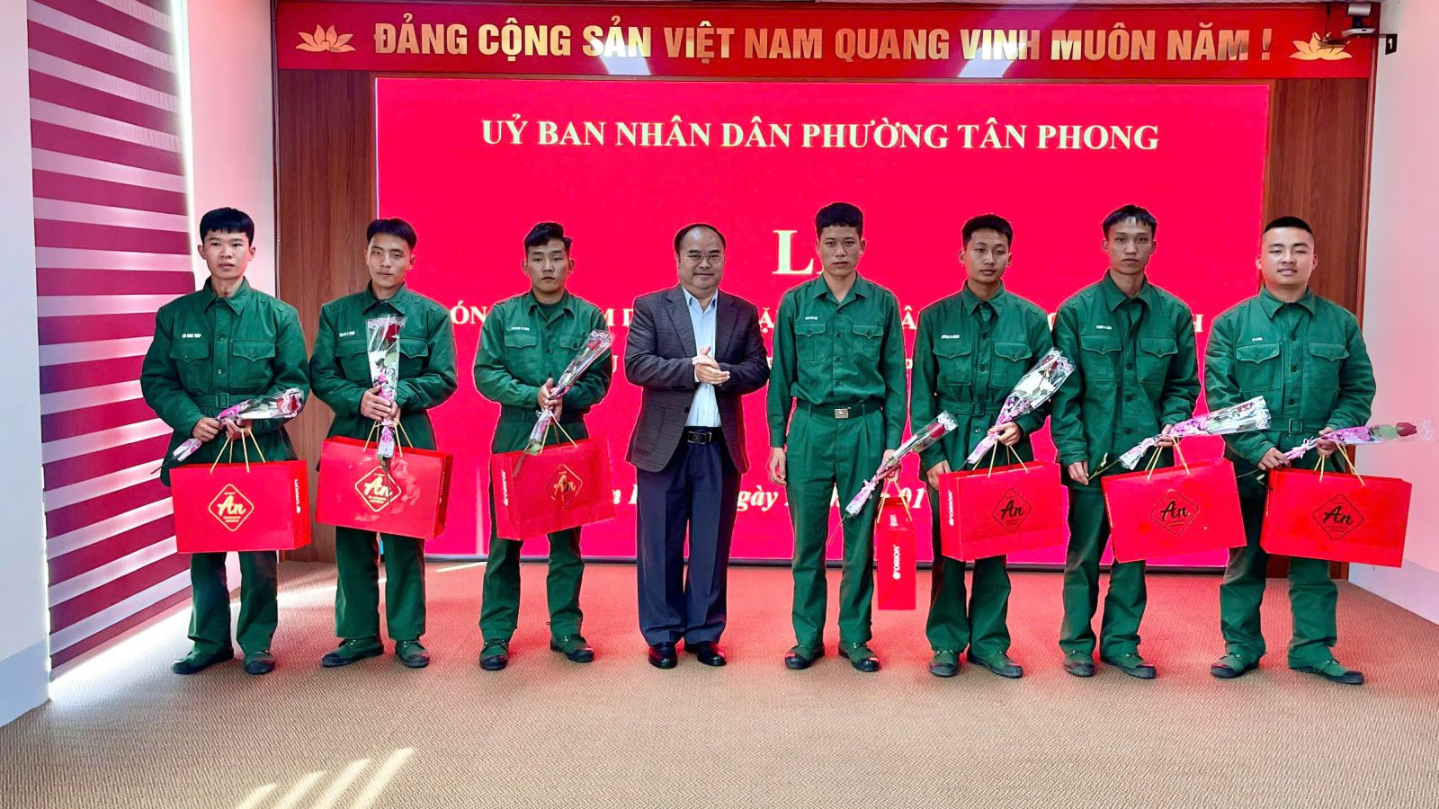 Theo đó, tại buổi lễ, phường Tân Phong đã đón nhận 22 chiến sĩ hoàn thành tốt nghĩa vụ quân sự tại các địa phương trong và ngoài tỉnh trở về phường Tân Phong. Phát biểu tại buổi lễ đồng chí Lê Xuân Dũng – Uỷ viên BTV, Phó Chủ tịch UBND phường Tân Phong, đã nồng nhiệt chào đón những chiến sỹ ưu tú của phường Tân Phong, hoàn thành nghĩa vụ quân sự trở về xây dựng quê hương đúng dịp, chuẩn bị đón xuân mới Bính thìn 2026.