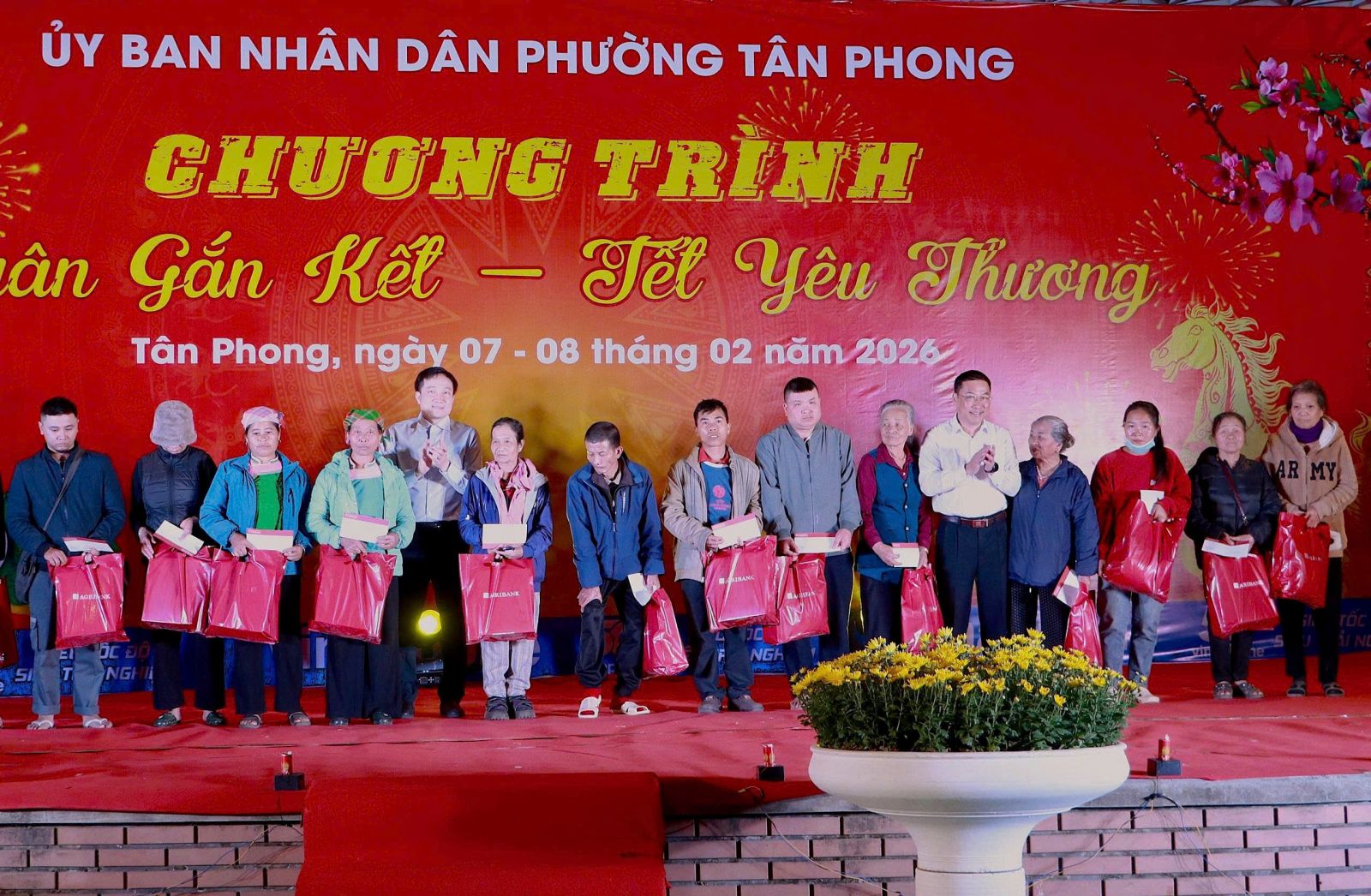 Tối ngày 07/2, tại phố đi bộ Hoàng Diệu, phường Tân Phong tổ chức khai mạc Chương trình “Xuân gắn kết – Tết yêu thương” tết Bính ngọ, năm 2026. Dự chương trình có các đồng chí: Nguyễn Tuấn Anh – Ủy viên dự khuyết Ban Chấp hành Trung ương Đảng, Phó Bí thư Tỉnh ủy Lai Châu; Tống Thanh Bình – Ủy viên Ban Thường vụ Tỉnh ủy, Phó Chủ tịch Thường trực Ủy ban MTTQ Việt Nam tỉnh; Trần Mạnh Hùng – Tỉnh ủy viên, Giám đốc Sở Văn hóa – Thể thao và Du lịch tỉnh; Mùa A Trừ - Tỉnh uỷ viên, Bí thư Đảng uỷ, Chủ tịch HĐND phường; Đặng Quang Chung – Phó Bí thư Thường trực Đảng uỷ phường; Nguyễn Văn Nghiệp – Phó Bí thư, Chủ tịch UBND phường; các đồng chí lãnh đạo HĐND, UBND, Uỷ ban MTTQ,  các Ban đảng,  đoàn thể chính trị, cơ quan đơn vị phường, cùng cán bộ giáo viên, học sinh các nhà trường và đông đảo Nhân dân, du khách dự chương trình.