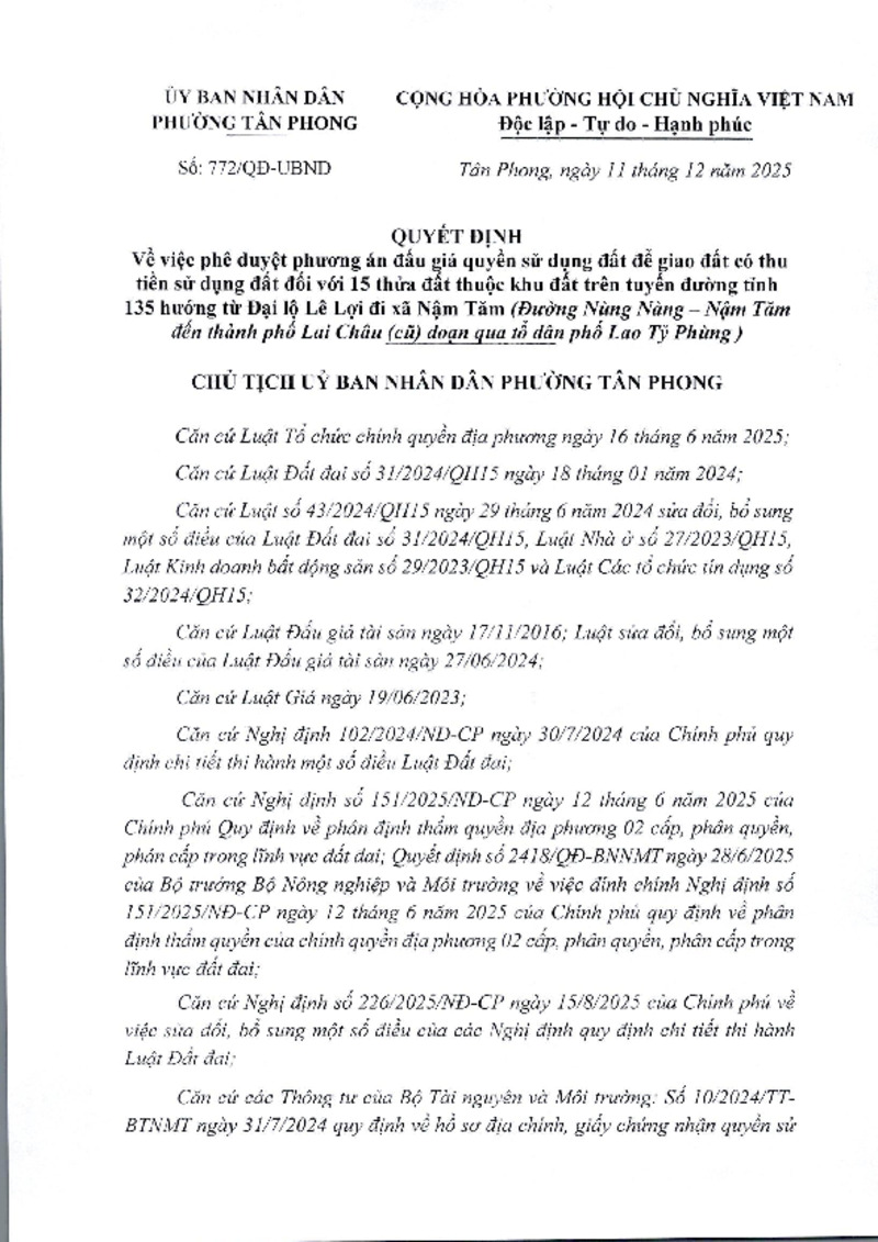 | Số hiệu | 772/QĐ-UBND | Cơ quan ban hành | Ủy ban nhân dân phường Tân Phong |