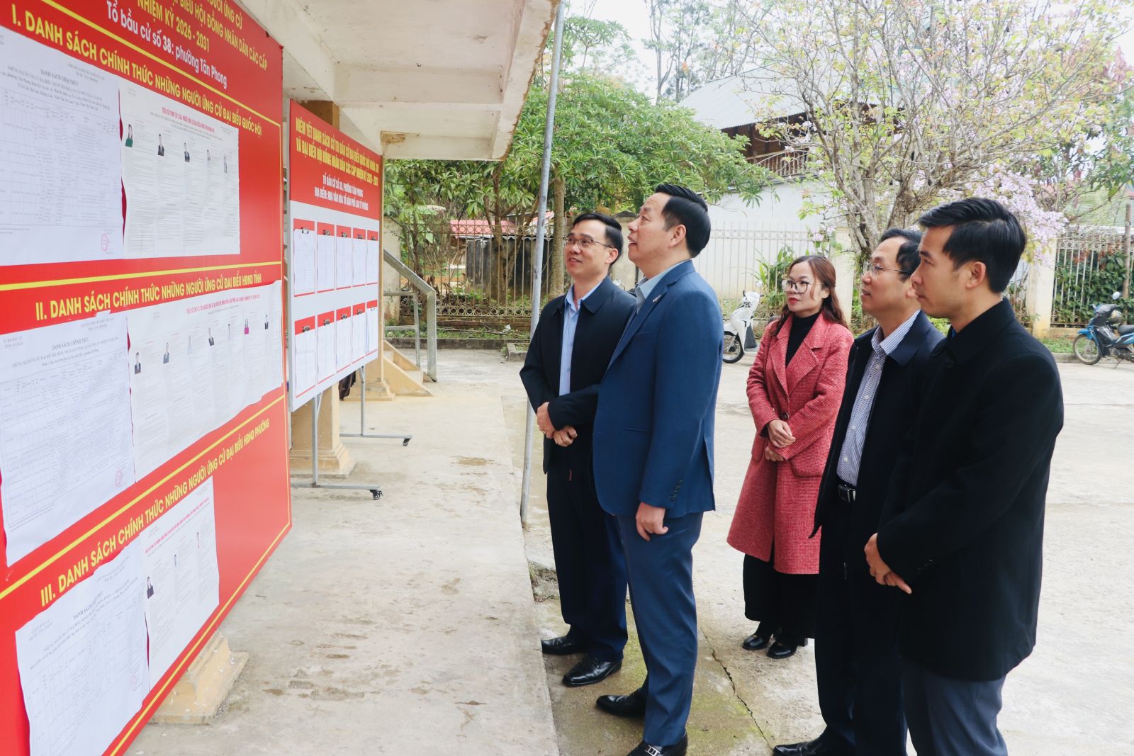 Chủ tịch UBND tỉnh Hà Quang Trung kiểm tra niêm yết danh sách cử tri tại tổ dân phố Lao Tỷ Phùng.