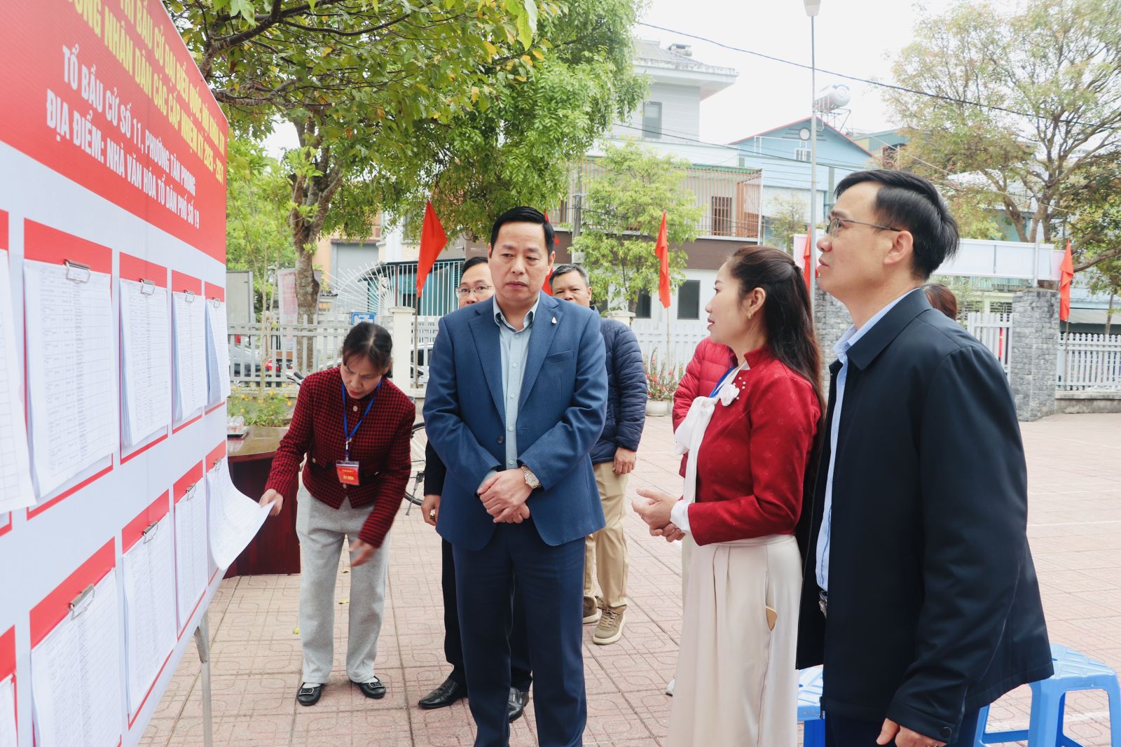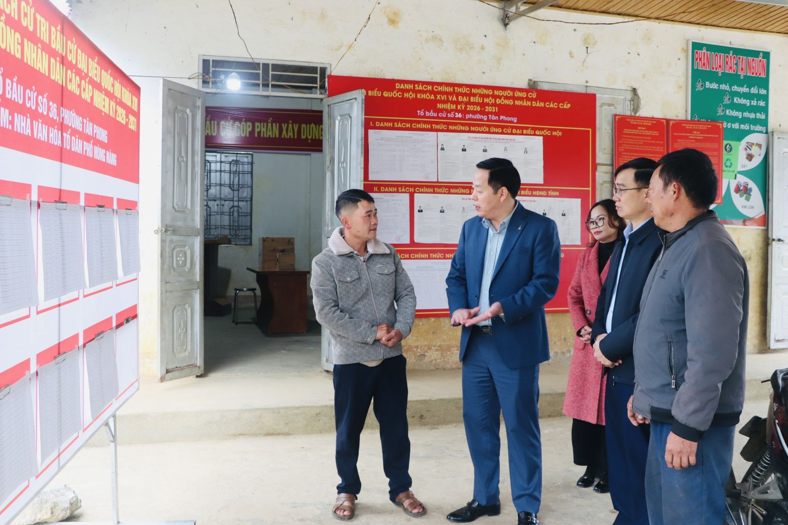 Tại tổ dân phố Sáy San 1, đồng chí Chủ tịch UBND tỉnh nghe Tổ bầu cử báo cáo tiến độ chuẩn bị và chỉ đạo trực tiếp tại đây.