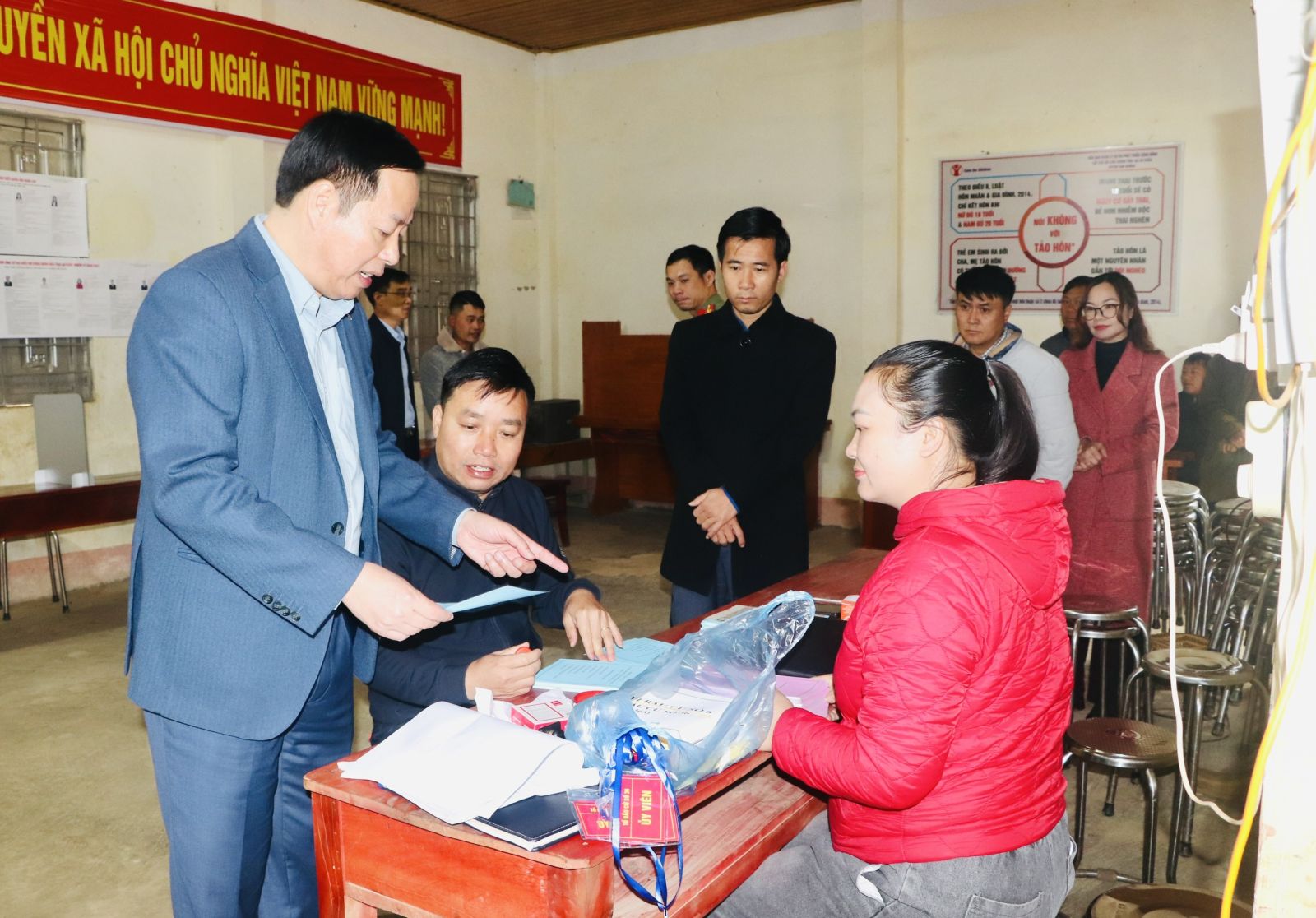 Đồng chí Chủ tịch UBND tỉnh nhắc nhở Tổ bầu cử của tổ dân phố trong quá trình tổ chức cho cử tri bỏ phiếu đảm bảo theo quy định.