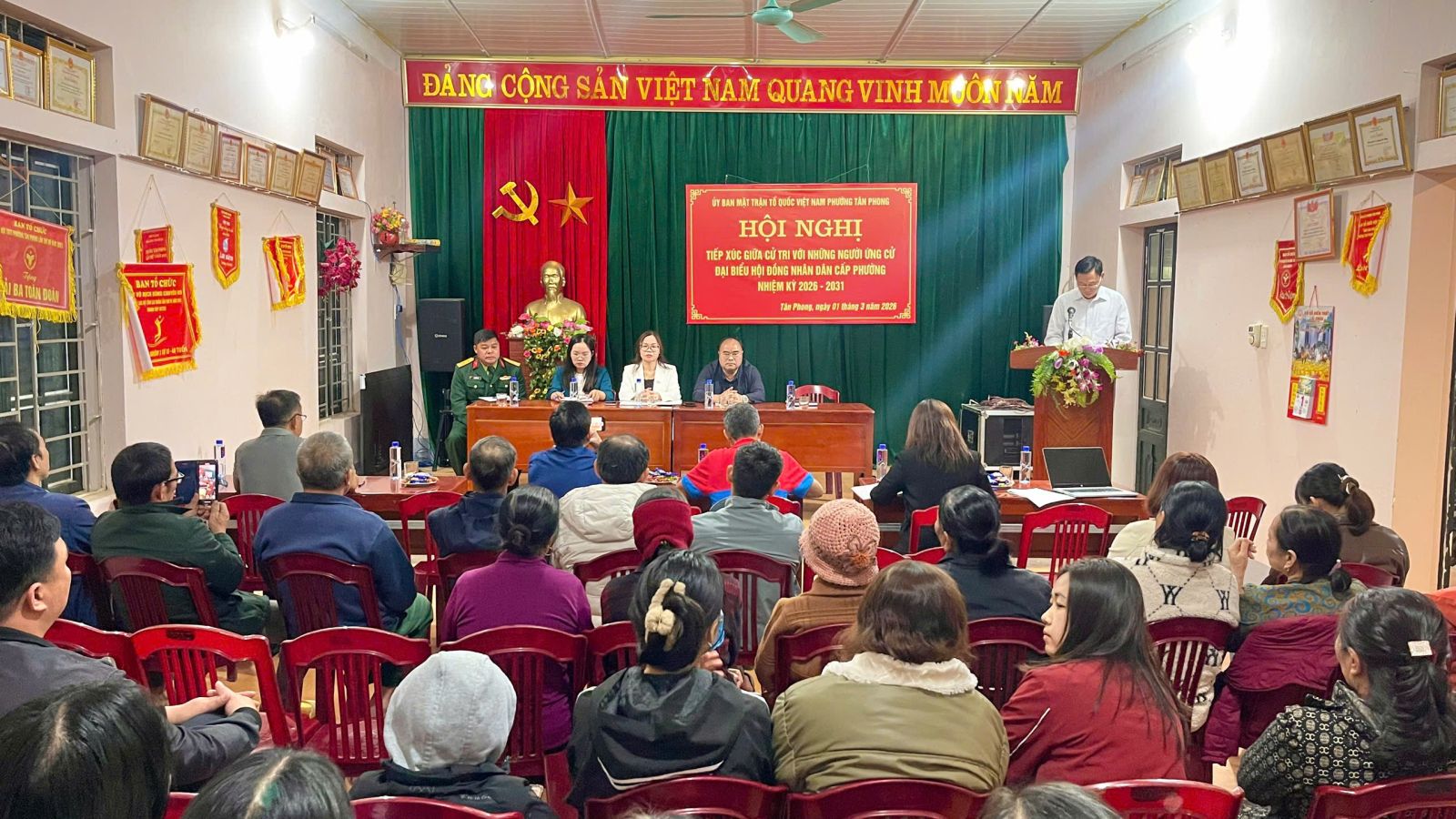 Tối ngày 01/3/2026, tại nhà văn hoá tổ dân phố số 15; Ban Thường trực Ủy ban MTTQ Việt Nam phường Tân Phong, tổ chức Hội nghị tiếp xúc cử tri giữa những người ứng cử đại biểu Hội đồng nhân dân phường Tân Phong nhiệm kỳ 2026 – 2031, với các cử tri thuộc tổ dân phố 15.