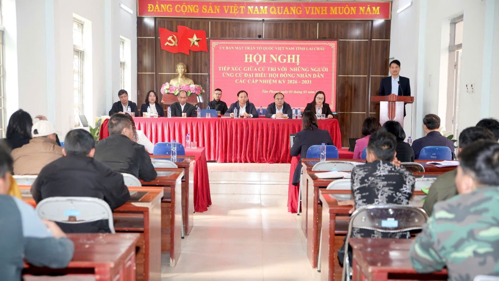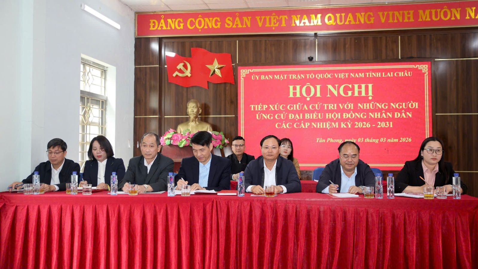 Sáng 3/3, Uỷ ban Mặt trận Tổ quốc (MTTQ) Việt Nam tỉnh chủ trì, phối hợp với Đảng uỷ, HĐND, UBND, Uỷ ban MTTQ Việt Nam phường Tân Phong tổ chức hội nghị tiếp xúc giữa cử tri với những người ứng cử Đại biểu HĐND các cấp nhiệm kỳ 2026-2031. Dự hội nghị có đồng chí Lê Minh Ngân - Uỷ viên Ban Chấp hành Trung ương Đảng, Bí thư Tỉnh uỷ; lãnh đạo Văn phòng Tỉnh uỷ; Đảng uỷ, HĐND, UBND, Uỷ ban MTTQ Việt Nam phường; đại biểu ứng cử HĐND các cấp và đông đảo cử tri của các tổ dân phố: Sáy San 4, Sáy San 3, Sáy San 1, Nùng Nàng, Lao Tỷ Phùng, Phan Chu Hoa, Xì Miền Khan.