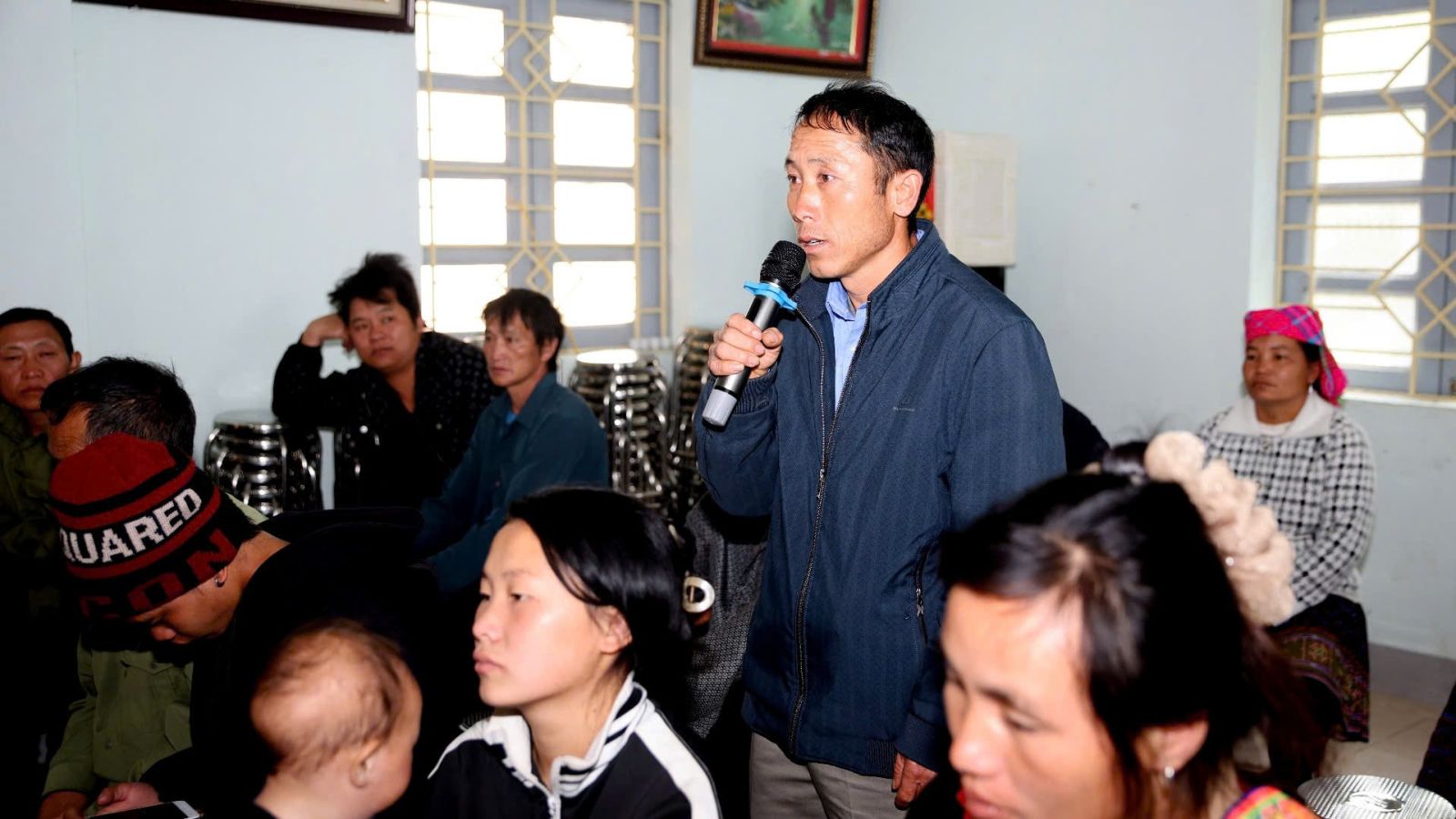 Đồng chí Mùa A Trừ - Tỉnh uỷ viên, Bí thư Đảng uỷ, Chủ tịch HĐND phường Tân Phong trình bày chương trình hành động tại hội nghị tập trung vào vấn đề quan tâm phát triển vùng đồng bào dân tộc thiểu số.
