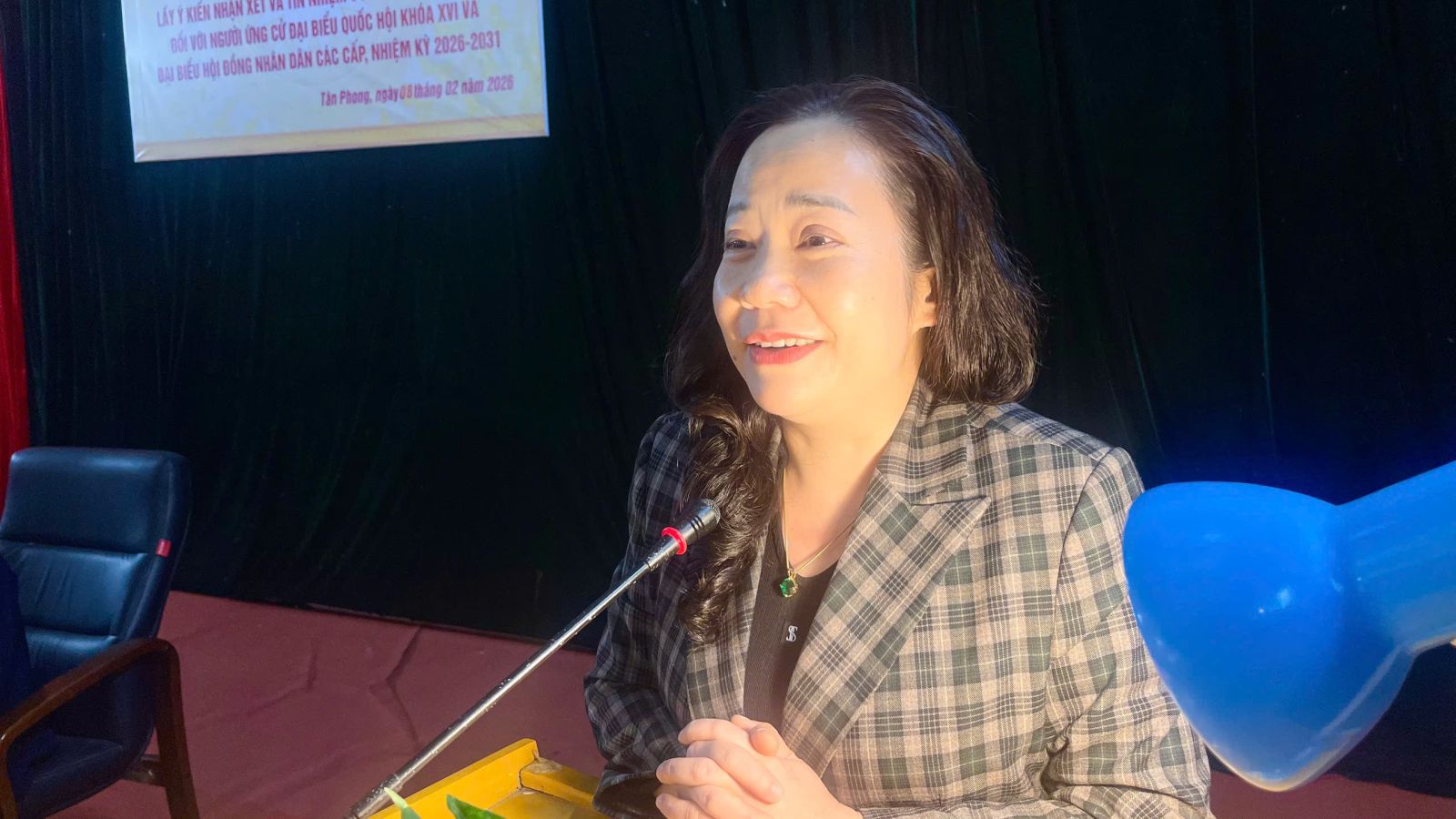 Đồng chí Tẩn Thị Quế - Uỷ viên BTV Tỉnh uỷ, Phó Chủ tịch HĐND tình Lai Châu, ứng cử Đại biểu HĐND tỉnh Lai Châu nhiệm kỳ 2026 – 2031, phát biểu tại Hội nghị lấy ý kiến nhận xét và tín nhiệm của cử tri nơi cư trú tổ dân phố số 10.
