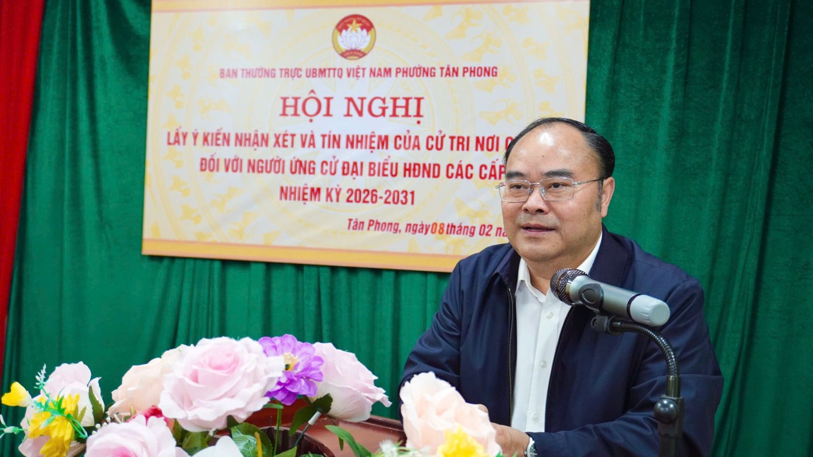 Lấy ý kiến nhận xét và tín nhiệm của cử tri nơi cư trú đối với những người được giới thiệu ứng cử ĐBQH khóa XVI và Đại biểu HĐND các cấp, nhiệm kỳ 2026 – 2031 với: 06 người ứng cử ĐBQH; 43 người ứng cử HĐND cấp tỉnh; 41 người ứng cử HĐND phường Tân Phong; 45 đại biểu HĐND các xã, phường lân cận. Kết quả 100% cử tri phường Tân Phong tại các hội nghị, nhất trí biểu quyết tín nhiệm, giới thiệu 135 ứng cử ĐBQH khóa XVI và Đại biểu HĐND các cấp, nhiệm kỳ 2026 – 2031.