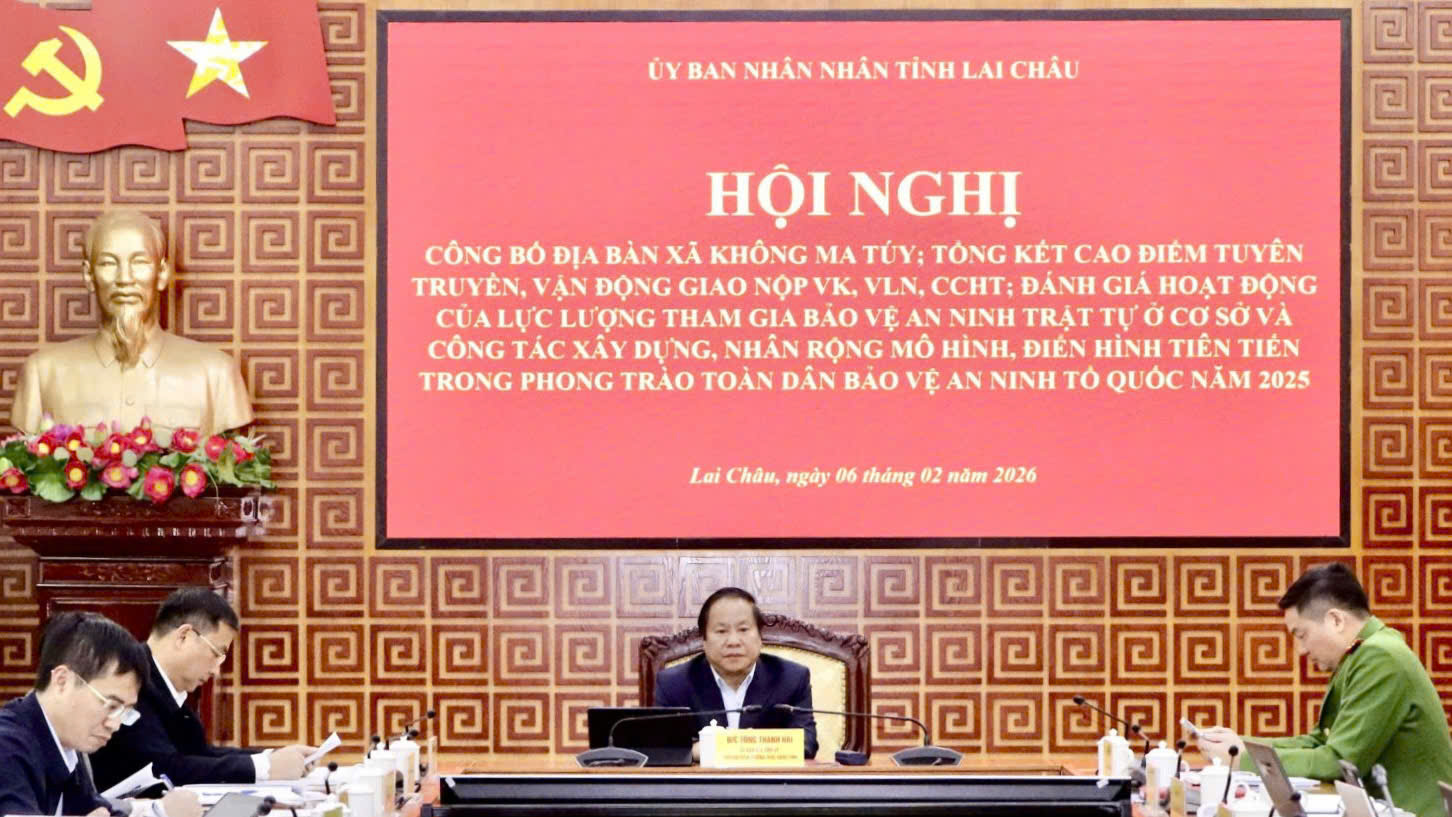 Tại Hội nghị, đã công bố Quyết định số 2918/QĐ-UBND ngày 18/11/2025 của UBND tỉnh Lai Châu phê duyệt các địa bàn cấp xã không ma túy tỉnh Lai Châu năm 2025 gồm 11 xã: Nậm Mạ, Pa Tần, Hồng Thu, Tủa Sín Chải, Khun Há, Tả Lèng, Nậm Sỏ, Mù Cả, Nậm Tăm, Lê Lợi, Mường Mô.