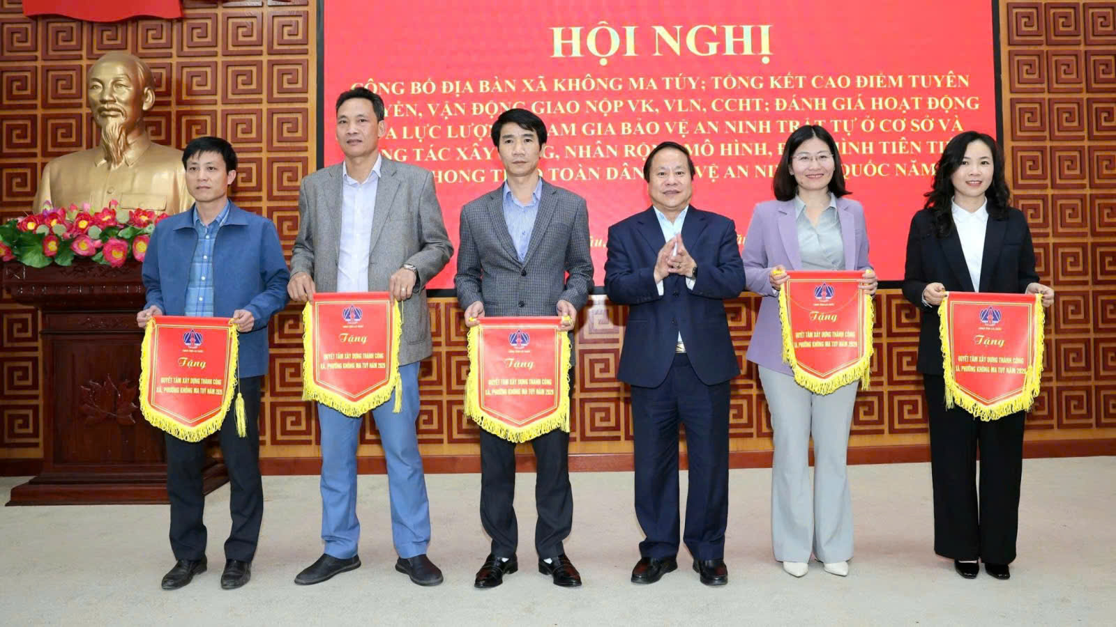 Phó Chủ tịch Thường trực UBND tỉnh Tống Thanh Hải trao Cờ thi đua cho 8 xã, phường phấn đấu xây dựng địa bàn không ma túy trong năm 2026.