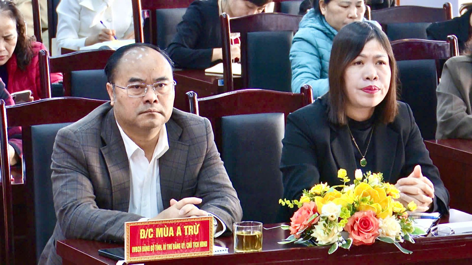 Đồng chí Mùa A Trừ - Tỉnh ủy viên, Bí thư Đảng ủy, Chủ tịch HĐND phường cùng đại biểu tiếp thu nội dung hội nghị.