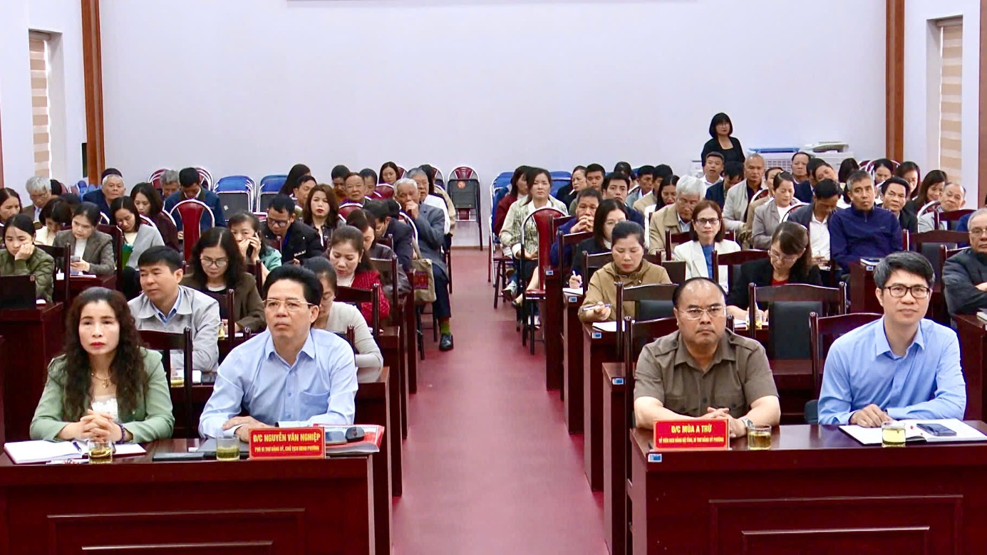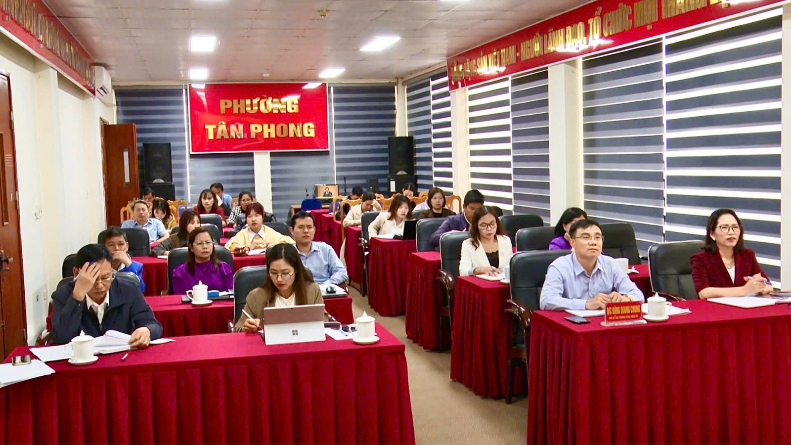 Đại biểu dự hội nghị tại điểm cầu Trụ sở Đảng uỷ phường Tân Phong