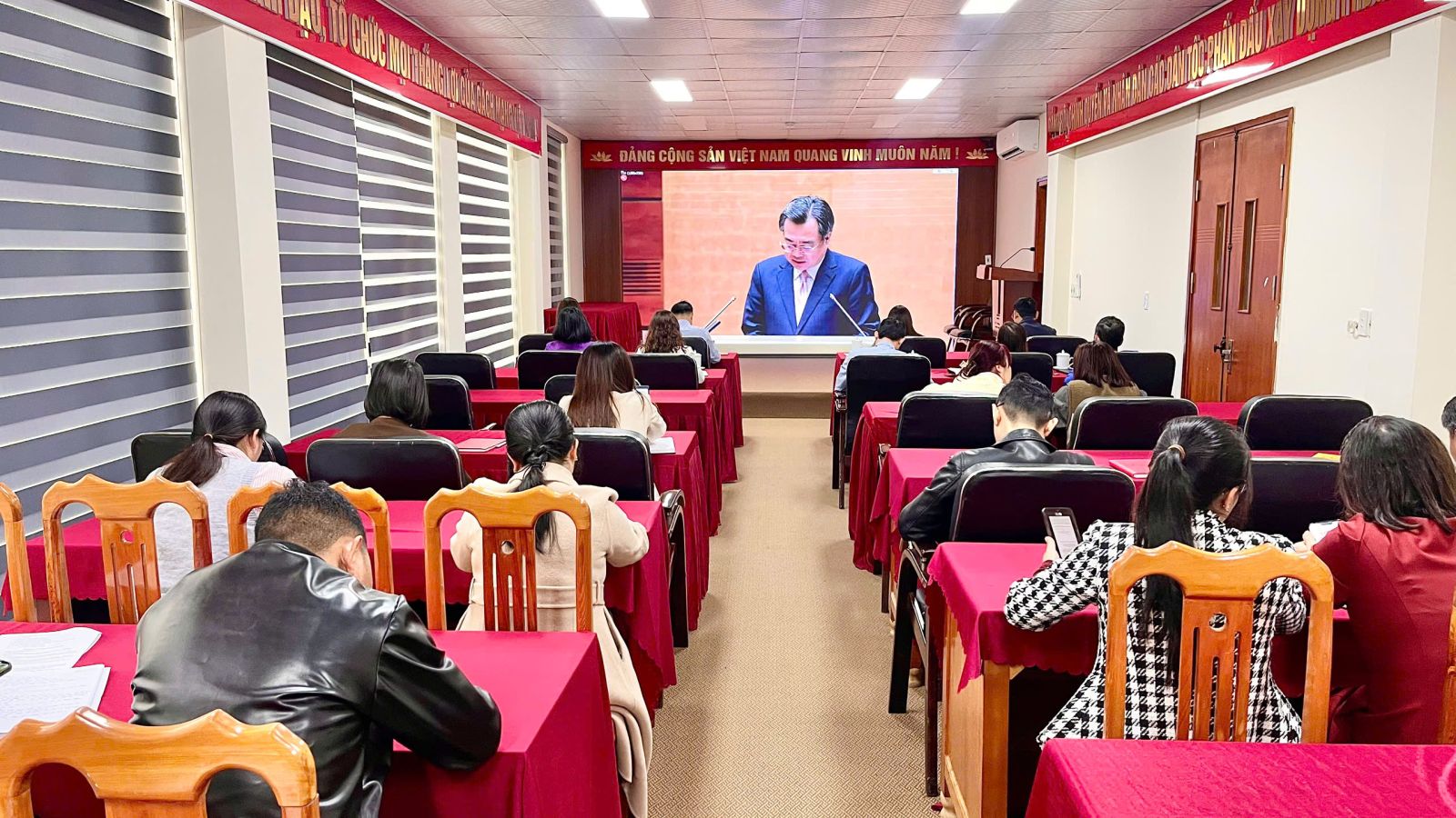 Quang cảnh tại điểm cầu Hội trường UBND phường Tân Phong.