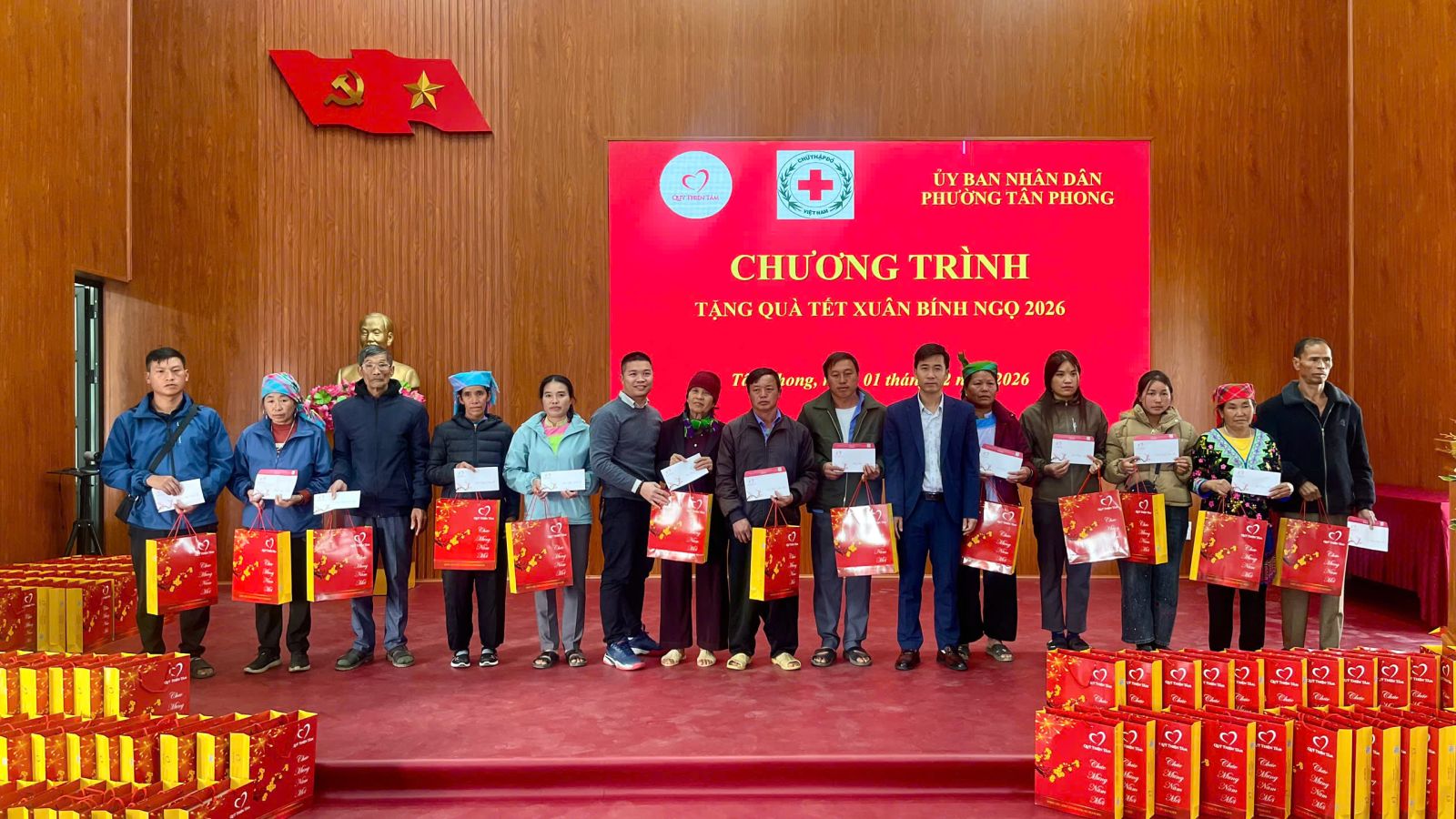 Chiều ngày 01/02, Quỹ Thiện Tâm - Tập đoàn Vingroup phối hợp với phường Tân Phong trao quà tết cho hộ nghèo, hộ cận nghèo trên địa bàn. Dự chương trình trao quà có ông Nguyễn Thanh Huy – Đại diện quỹ thiện tâm tập đoàn Vingroup; cùng đại diện Hội Chữ thập đỏ tỉnh Lai Châu; về phía phường Tân Phong có đồng chí Lê Xuân Dũng – Uỷ viên BTV, Phó Chủ tịch UBND phường; lãnh đạo, công chức Phòng Văn hoá – xã hội phường.